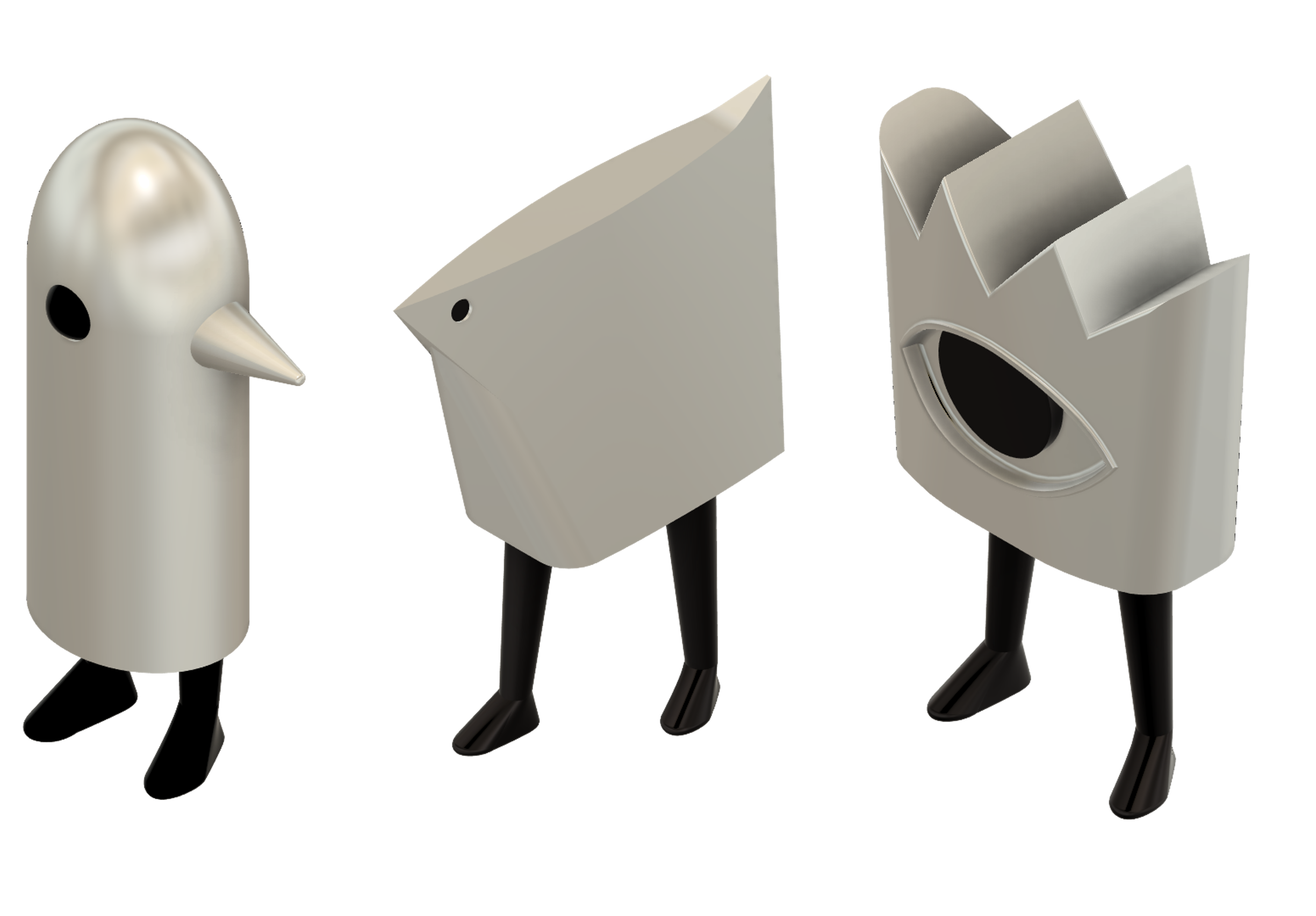These three little critters are the mascots of Friends Make Art, a local art collective in Edmonton that I co-run. As part of our August show, I designed and manufactured a short batch production run of figurines. They were beloved at the show, and sold out! I look forward to making more of these in the future.